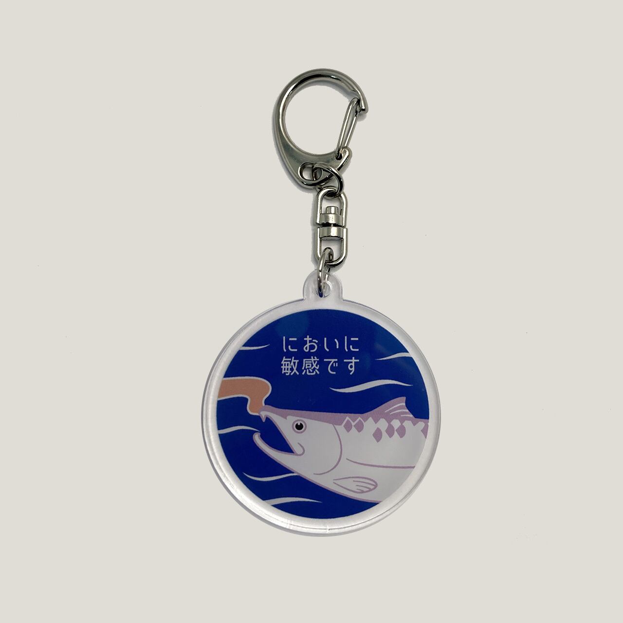 「においに敏感です」アクリルキーホルダーは、発達障害の特性のひとつである嗅覚過敏があることを、やわらかく周囲に伝えられるアイテムです。